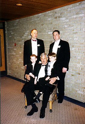 Floyd Phelps, the grandson of Marty's favorite Dressler aunt, Aunt Anna, is seated holding two of his own grandsons, Michael Gibson on his left knee and Jonathan Gibson on his right knee. Standing are his two sons, Floyd Jr. and Christopher |
