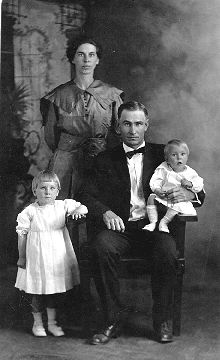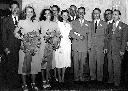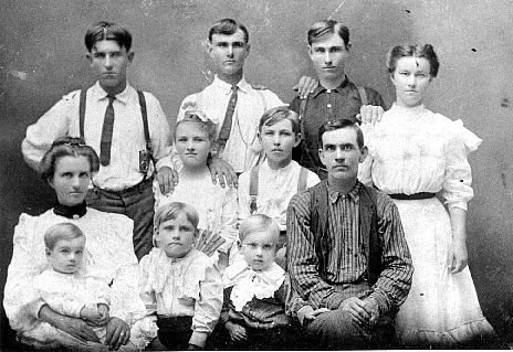 Jerry's mom's oldest sister Norma Grace is seated with her three children and huband, Scott Miller, in the foreground. Standing in the background are brothers El, Bud, Will and sister Letha Fay. In the center are Jerry's mom and younger brother, Raymond |