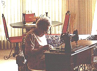 Marty's mom was always busy! Here she is sewing in the dining room of our Tustin home. |