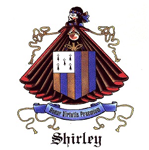 The Shirley coat of arms is a quarter badge with five ermines and vertical stripes of gold and blue. The ermines, depicted by a white field and black spots, representing dignity and nobility. This Coat of Arms dates from 1334.