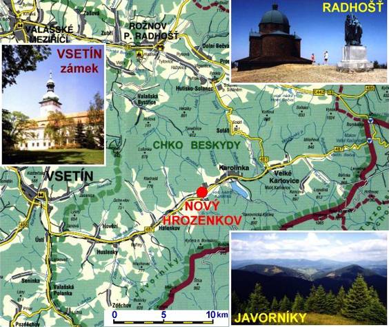 Until 1649 the town of Novy Hrozenkov had been only a part of a town called Hovězí and it had belonged to Vsetín´s manor of Mikulás Pazmány. In that year 41 farmsteads of shepherds separated and founded a new town called Nová dědina (New village). It was also called - probably according to Pazmány's wife Rozina - Rozinka, Rozinkow, Hrozenkov and, finally, since the 19th century it is called Novy Hrozenkov.