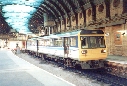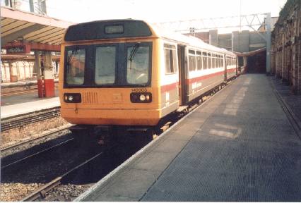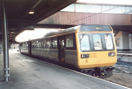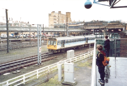 Class 142 DMU no. 142024 departs York as seen from the National Railway Museum, 13/2/02.