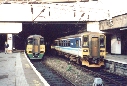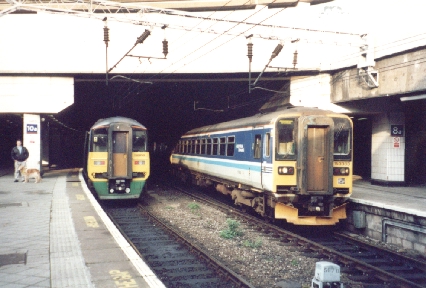 Left: 158859 Right: 153383 at Birmingham New Street, 03/04/02.