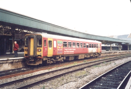 (1)Wales and West's Class 153 no.153370 in 'Heart of Wessex' livery at Bristol Temple Meads, 03/04/02.