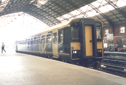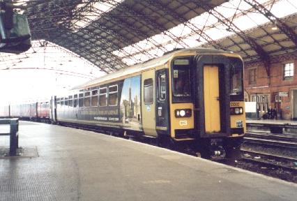 Class 153 DMU No. 153319 arrives at York, 13/2/02.