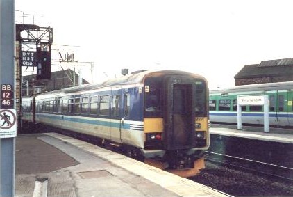 Class 153, No.153366 leaves Wolverhampton for Birmingham New street, 23/02/01.