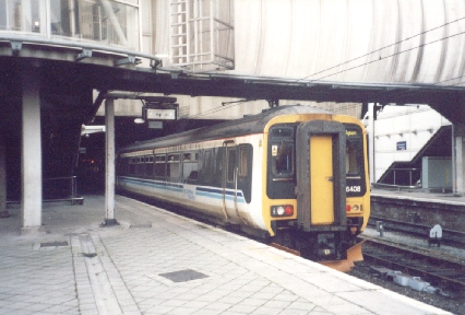 'Central Trains Express' livered Class 156 No. 156408 arrives at Birmingham New Street, 03/04/02.