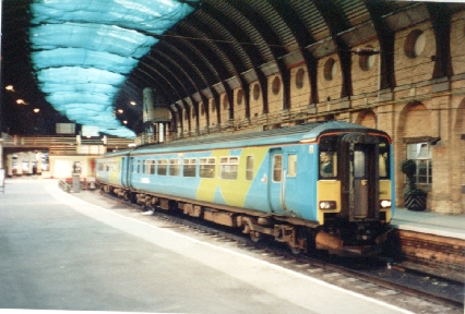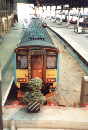 'Arriva' liveried Class 156 DMU No.156483 at York, 13/2/02.