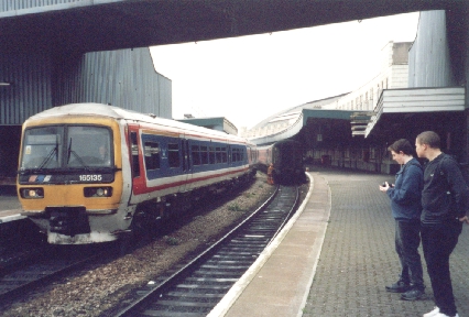 Class 165 No. 165135 departs Bristol Temple Meads, 03/04/02.