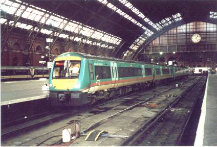 Midland Mainline Turbostar Unit No.170102 arriving at St. Pancras, 17/03/01.