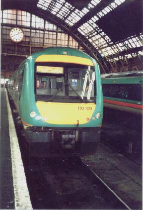 LEFT: Turbostar Unit No. 170108 - RIGHT: Turbostar Unit No. 170109 at St. Pancras, 17/03/01.