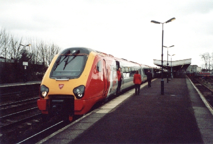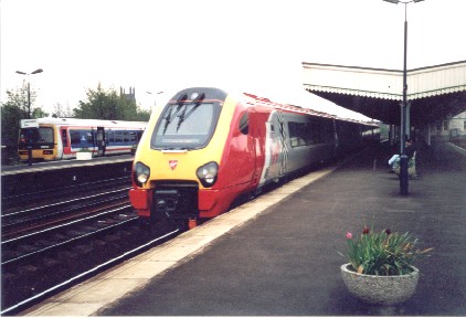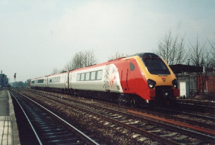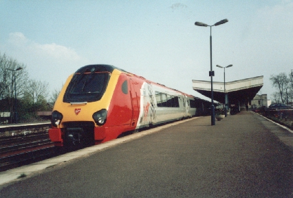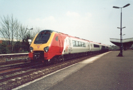 Virgin ‘Voyager’, No. 220018 departs Leamington Spa station, 10/05/01.