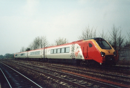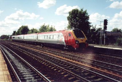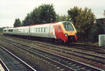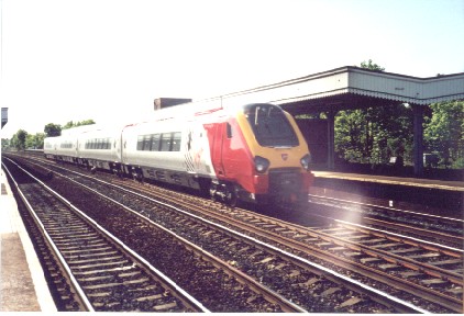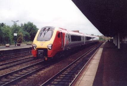 ‘Virgin Voyager’ No. 220001 shows it's nameplate "Maiden Voyager" at Leamington Spa, 28/6/01.
