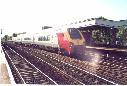 Virgin ‘Voyager’ No. 220018 passes through Leamington Spa station, 24/05/01.