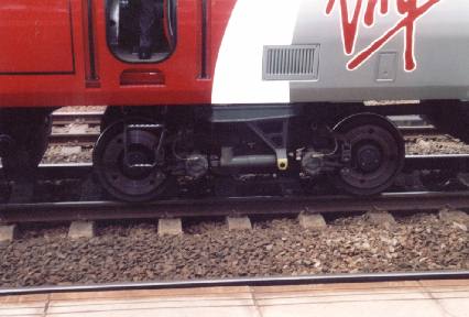 Virgin Voyager No. 220016 shows bogie detail at Leamington Spa, 19/7/01.