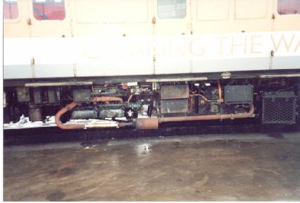 Railtrack’s Sandite Class 121 (DMU) No. 960021 showing chassis detail at Tyseley, 31/03/01.