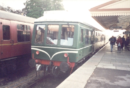 Cross Country DMU 2 car set in BR green livery with whiskers, late 1999 (Gloucestershire and Warwickshire Railway).