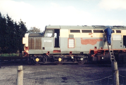 Class 37 No.37099 being repainted, late 1999 (Gloucestershire and Warwickshire Railway).
