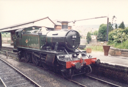 Ex- GWR Praire tank No.4141 in BR lined green, late Crest at Llangollen Station, 16/05/99 (Llangollen Railway).