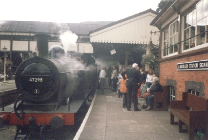 Ex - LMS Jinty (3F)No.47298 at Llangollen Station in the BR Black late Crest livery 7/9/97.