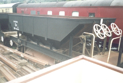(2)A "Dog Fish" Ballast wagon at Carrog station Llangollen Railway Sept 2000