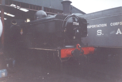 Ex-GWR No.7754 in BR ‘early crest livery’ at Llangollen loco yard, Sept 2000 (Llangollen Railway).