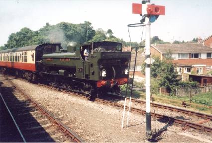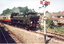 57xx GWR Pannier tank No. 5764 arrives at Bewdley, 29/7/01.