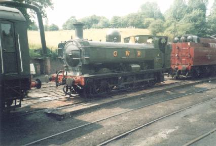 57xx GWR pannier tank No.7714 in 1946 G. W. R. livery at Bridgenorth, 29/7/01.