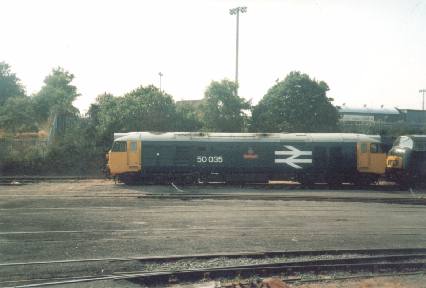 Class 50 No.50035 'Ark Royal' in large logo livery at Kidderminster, 29/7/01.