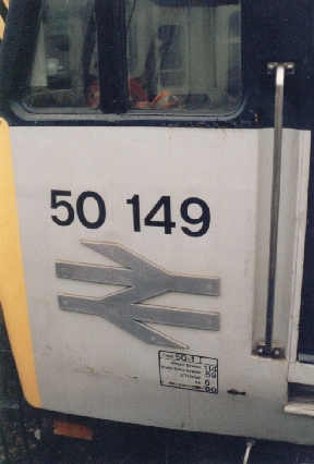No. 50149 "Defiance" name plate view at Williton station (West Somerset Railway) August 1998.
