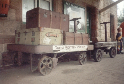 GWR luggage trolley at Washford station, Aug 1998 (West Somerset Railway).