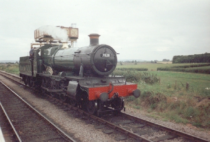 GWR Odney Manor No.7820 fills up with water, Aug 1998 (West Somerset Railway).
