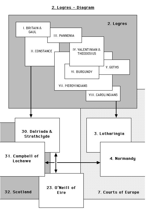 Normandy- England & N-France De Burgh of Kent- Great Earls of Kent Guise- Maison de Normandie kn. as Aspley-Guise Courts of Europe (Habsburg-Lorraine-Valois/Capetian-England-Scotland) Bourbon- M. de Valois, kn. as Bourbon Plantagenet- France, England, Anjou, Stuart & De Gueldre O'Neill of Eire
