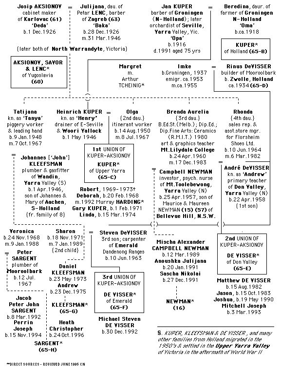 Revolution began in Russia in 1905 due to repressive rule, foreign wars, uncertain markets for Russian goods, and widespread famine. In 1914, Dmitri AKSIONOV (60), then aged 19 years, decided to enlist in the war - at least this was no worse than starving to death at home. He may have been in Palace Square, Moscow, on 1st August, when war was declared and ten thousand people gathered together to acclaim the Czar. 'Much moved, he blessed them: last fervent gesture of the last sovereign' (Olivier, 1979: 206). The Czarina's mentor, the monk Rasputin, was assassinated in 1916, and the army mutinied in February 1917, followed swiftly by abdication of the Czar in a railway carriage on 15 March, institution of Bolshevik (majority) rule, and finally by the assassination of the entire Romanov royal family at Ekaterinburg on 16 July 1918. Many Russian soldiers were stranded in central Europe at various 'fronts' when these events occured, and had few alternatives other than to wait out the entire course of the war wherever they could. Return to Russia was dangerous, and life there uncertain. Many never went back. Dmitri Aksionov found work at the brewery of Karlovac, in Yugoslavia, and stayed. During the next seven years, he met and married Dorothea SAVOR, daughter of the owner of the brewery.