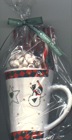 Wrap up with cellophane, tie with ribbon and attach a card.