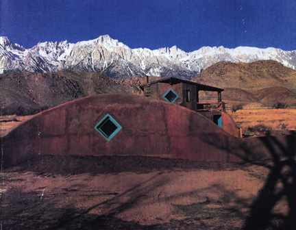 The Green Movement's form of organic archiecture is defined chiefly by the materials used in its construction and its methods of construction. For proponents of this approach 'organic' means made from natural sustainable non-toxic materials such as untreated tree-farm sourced wood, straw bales, earth, clay, and stone. Choosing a non-toxic and sustainable approach is not a simple task. The cult of chemistry is pernicious. Materials you would never suspect as being toxic are laden with chemicals. White and recycled paper can actually contain trace amounts of dioxin as well as many other chemicals. The seemingly natural cut logs of a log cabin home can be loaded with a witch's brew of preservatives and pesticides. Even fiber glass insulation, which one would expect to be nothing but glass fiber, is in fact loaded with added formaldehyde. Also, materials which may be natural and non-toxic may not always be sustainable. They may require unreasonable amounts of energy to prepare for construction use or may come from inappropriate sources. How do you insure the wood you buy in the hardware store comes from a tree farm rather than an old-growth forest? How do you know the tree farm wasn't using inappropriate pesticides and fertilizers? Our dependence upon industry has so distanced us from the sources of materials that these have become complex and vexing questions. It's rather like that old science fiction movie Soylent Green staring Charleton Heston. Just where does this stuff come from and what would it mean if we were to find out?