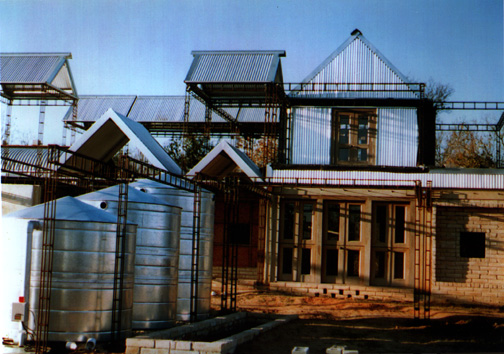 One way of dealing with this complex issue is to rely on materials available at hand on a building site generally earth and to owner-build homes using techniques that allow the inhabitants of a home, regardless of their skills, to be fully involved in the building process. This way the appropriateness of materials and techniques can be more easily verified. Thus one aspect of this organic architecture involves the revival of lost and traditional forms of vernacular architecture, since those forms of architecture were based on the use of at-hand materials and unspecialized skill. In England there is a revival of traditional Cob earth building. In France its the pisè de terra rammed earth technique. In the American southwest and midwest it's traditional adobe and straw bale construction. In Australia, where a veritable eco-housing boom is underway, a rich mix of techniques are being employed in projects ranging from individual homes to entire 'eco-cities' planned for Adelaide and New South Wales. Even the traditional architecture of Africa is enjoying a revival, which brings us back to that humble dung hut whose design has recently been directly transferred as a fixture of modern organic houses in Africa and Europe.