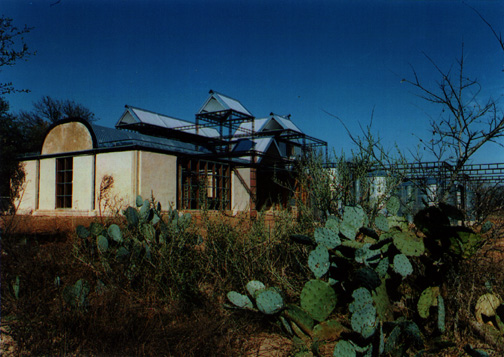 An interesting side of the Green housing movement is the idea that by choosing the organic approach one can create a living environment which promotes a sense of natural harmony or unity with the natural environment. This is much the same ideal Frank Lloyd Wright was reaching for. (interestingly, some of the Prairie School architects also specialize in Green architecture) In most cases, this is something the owners of these kinds of homes bring with them when they move in, the majority of Green home owners being ecologically conscious from the start, but there is a deliberate attempt to employ architecture which reinforces this impression. For example, one of the most unusual eco-houses is a kind of kit-built dome house known as DomeSpace developed in the Brittony region of France which looks, for all the world, like a flying saucer built by 18th century ship-wrights. Strange as it appears, the house is designed to promote a sense of natural harmony through its round dome shape and exclusive use of wood. (even the insualtion is made of natural cork) In the adobe revival we see a similar attempt to re-establish the natural harmony attributed to the native Americans through the duplication of their architecture.