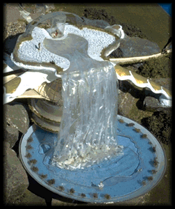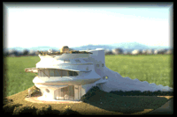 [Aquaterra concept model for residence by Eugene Tsui. (note pond skylight and structural support/entryway arms)]