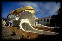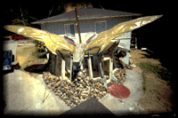 [Reyes house, a studio/bungalo design by Tsui. (note polymer fabric wings and spiral eye window)]