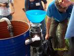 Many people outside the tropics would like to make biogas at home. I am one of them. Can we do it without having a farm? Making biogas outside the tropics has a problem. The bacteria are most productive at tropical temperatures. It is hard to achieve this in such countries as Britain, in the Winter - or even in the Summer. One can heat the mixture, but the purpose of making biogas is to produce useful energy. If the energy used to heat the mixture is equal to or more than the energy produced there's not much point. This is the fundamental problem when designing a system for use outside the tropics. The problem of heating is solved on the large scale farm and industrial biogas digesters easily because the proportion of insulation to volume goes down the larger the volume. But for a small scale plant for domestic use the cost of insulation and providing heat rises. The image here shows a digester operating in a tropical area - probably Australia.