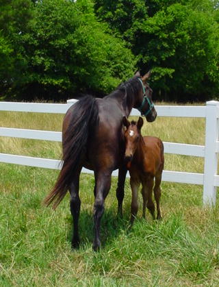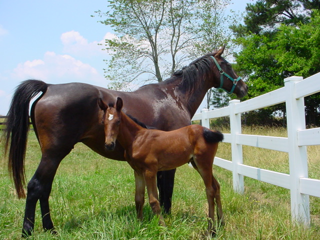 Ellie's 2002 baby by WowEvening Star - By Wow and out of Ellie by Equubar. This guy is full brother to Elan. He is a reddish bay color with black legs, mane and tail. He has no markings other than a star on his forehead. We expect him to mature somewhere between 16.2 and 17 hands. Wow is a 5-year-old 17.1 hand Oldenburg stallion by the Hanoverian stallion West Coast and out of Zookie’s Girl a TB mare. Zookie’s Girl produced 100% premium foals for the ISR/Oldenburg NA and made the Hanoverian book at age 21 being champion non-Hanoverian mare at that inspection. Ellie is a TB/Hanoverian and has a 17 hand half brother, out of the same dam, who is working 4th level. So sweet and quiet just like all of Ellie's babies are.