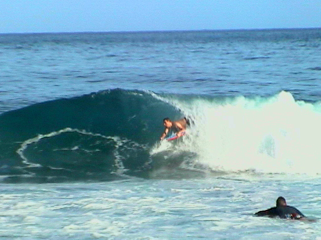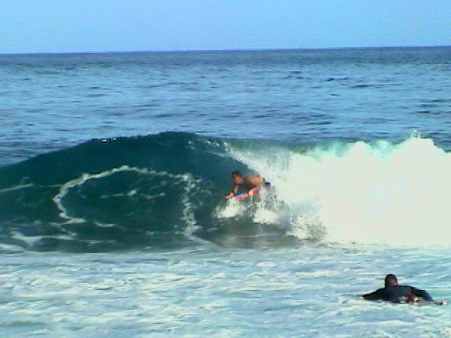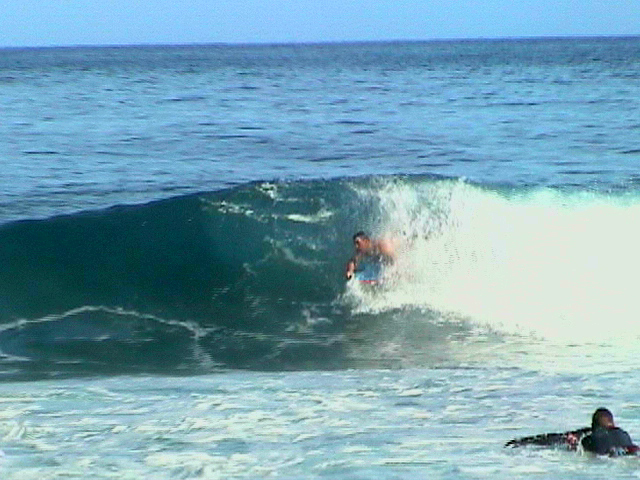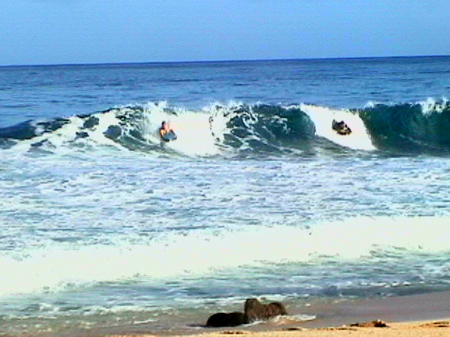 A NORTH SHORE WHALE BREACHING AND WAVING- MARCH 2002....