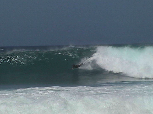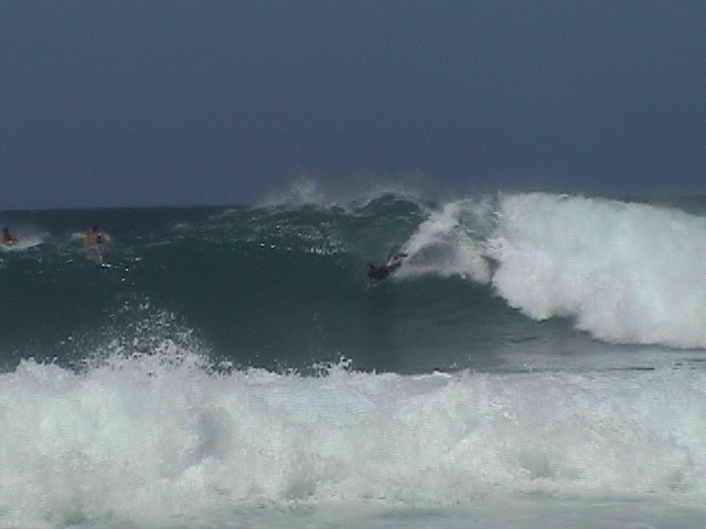 RIGHT NEXT TO PIPE, A FUN, PLAYFUL WAVE DURING A SOLID 6-8' SWELL, W/ THE TRADEMARK HAWAIIAN FREAK SET ALWAYS LOOMING ON THE HORIZON....