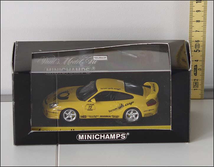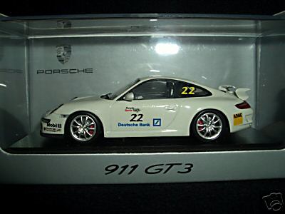 This item has been doing the rounds recently on eBay also, it's a standard Porsche GT3 dealer edition with additional decals supposedly given away as a promotional item by the Deutsche Bank. As these promo items usually have different boxes or plinths for all we know it could be a collector modified model.