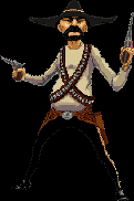 Sanchez is a little mexican with an attitude. He is the fastest pistol out of all the characters and carries TNT around with him just incase the fight calls for a little explosion. He does however loose his life the fastest, but if you keep moving and have good eye hand cordination you are sure to get plenty of kills |