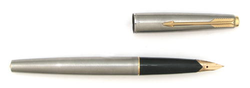 c1968 Parker 65 stainless steel flighter. Of all the postwar parkers, the English 65 may be my favorite, retaining as it does the heft of the 51 with the modernist lines of the 61s. The wing nib gives it a special flair. The pen has a 14K medium nib with a hint of flexibility. $225.00