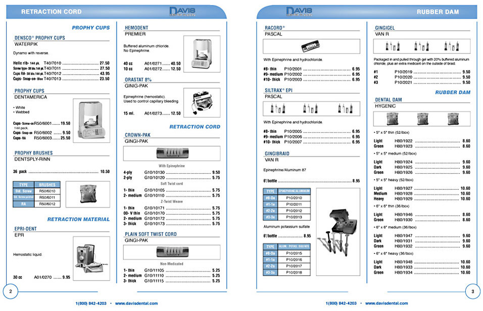Davis Dental Supply Catalog Spread
