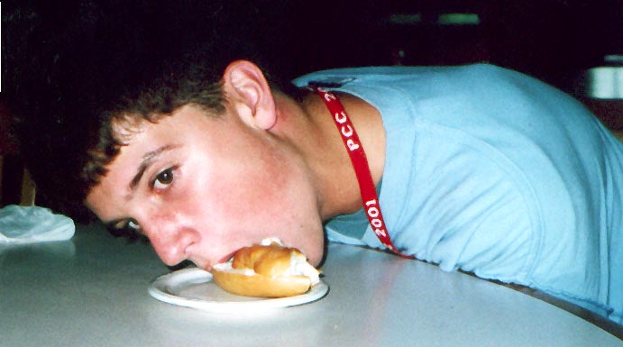 Sean put himself into a straight jacket for a dance & quickly discovered that it is hard to eat in one (2001)