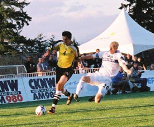 Probably the one play that summed up the evening occured just on the stroke of halftime. The Whitecaps had worked the ball upfield nicely and a real chance was presented to Niall Thompson who found himself all alone in front of goal from about 10 yards. He had the chance handed to him and as he fell his leg swung agonizingly over top of the ball which ended up harmlessly in the arms of a grateful Zagar.
